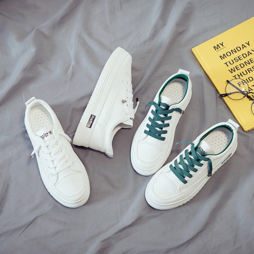White Shoes Female Spring New Heightening Student Running Board Shoes Female Breathable Lace