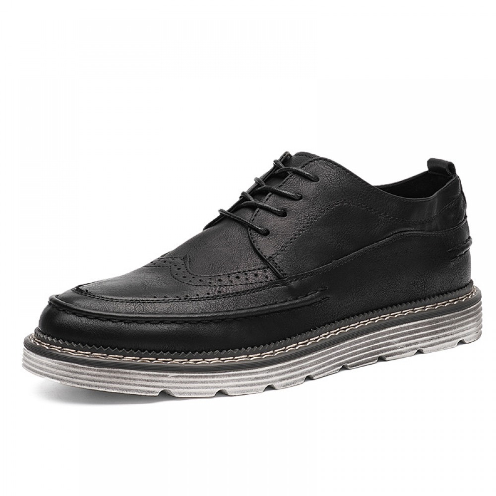 New Men's Shoes Casual Leather Shoe Round Toe Lace-Up Breathable Trend Shoes