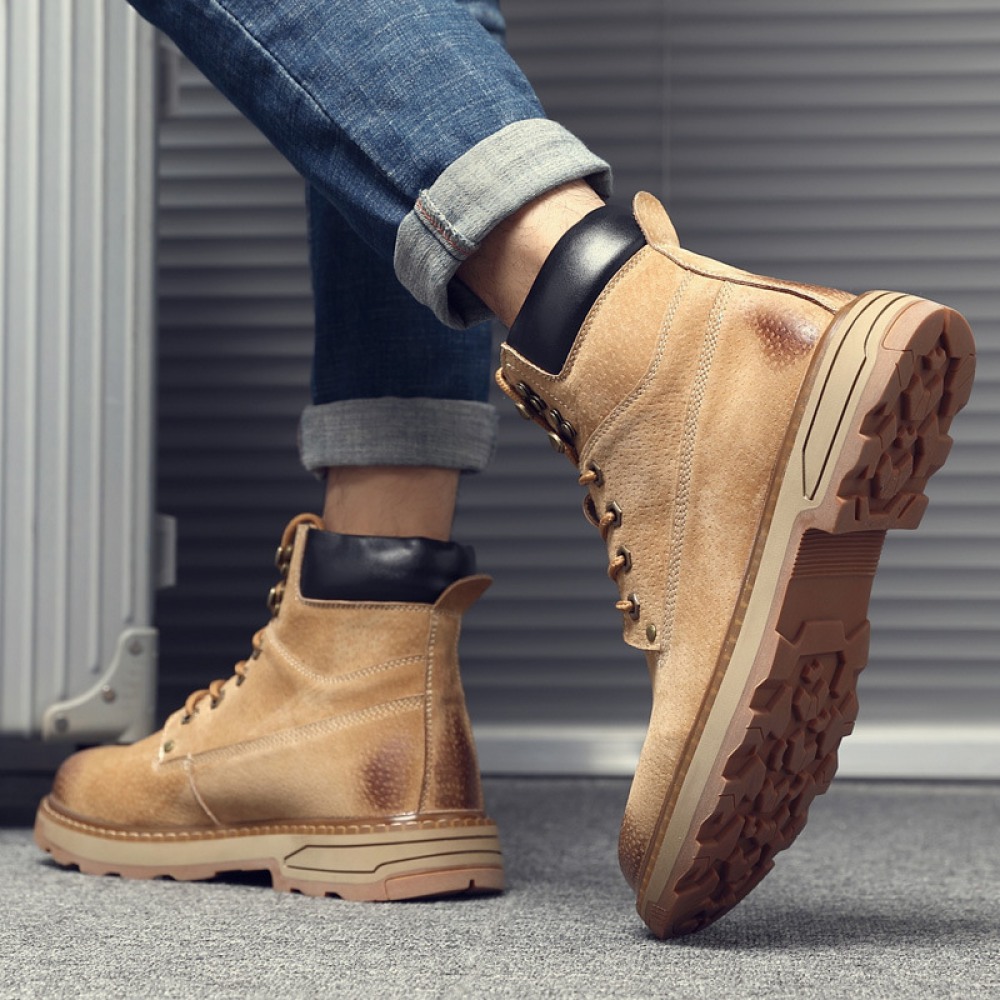 Martin Boots Men's Autumn New Leather Boots Leather Casual Mid-Cut Tooling Boots High-Top Mens Shoes