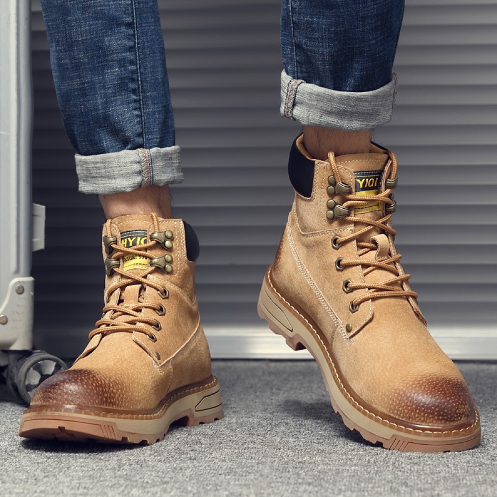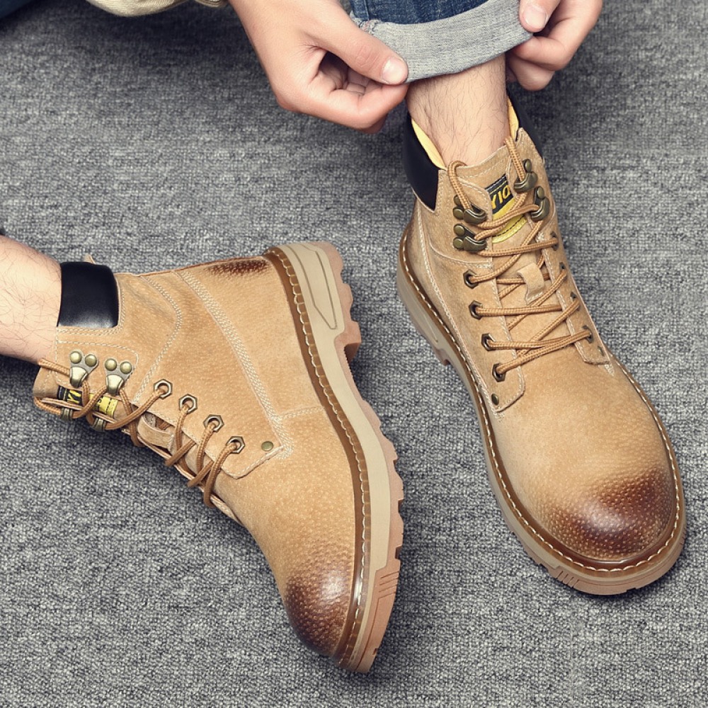 Trend Martin Boots Cow Suede Leather Men's Boots Low-Cut Tooling Boots Casual Mens Short Boots