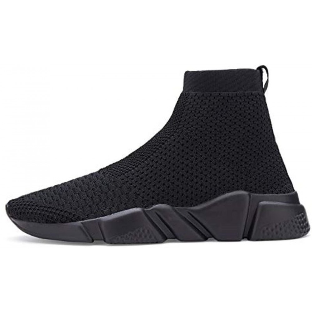 Men's Running Shoes Breathable Knit Slip On Sneakers Lightweight Athletic Casual Sports Shoes High Top All Black